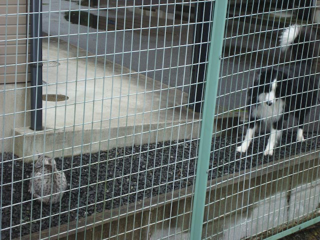 仙台は8月に入ってもまだ梅雨が明けません。 そんな小雨降るある日、いつものように散歩してると 例の猫が。 隣のアパート猫もだんだんガスに慣れて来て 2メートルぐらいまでなら近づけるようになってきました。 ガスのほうが怖いらしく この距離で固まったままです。 猫さんのほうが余裕です。 果たして、 種族の壁を越えて仲良くできるの日はくるのでしょうか? さて、「シャトー・ガスパール」ですがだんだんブドウらしくなってきました。 でも、成っているのはこれと、ちっちゃいのがもう一つなので ワイン予約されている方は、もうすこし待っていてくださいね。 そして、 今回は「白露垂珠(はくろすいしゅ)」純米吟醸 美山錦 です。 出羽三山深層水で醸した淡麗旨口。杯が止まりません。 肴は牛タタキと馬刺し。 ガスの目の前にあるのが この辺でよく食べる「しそみそ」(ガスパパの好物)です。