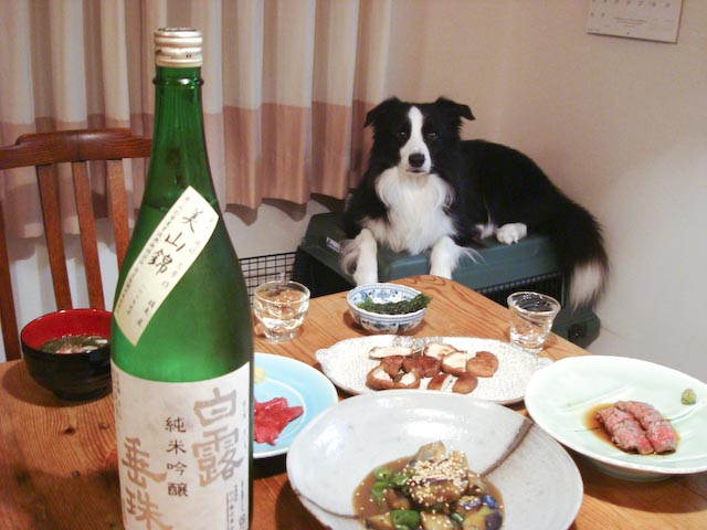 梅雨も中休みのようで最近暑いですね ダブルコートの毛皮をまとったヤツにもこの暑さは応えるようで ウチのなかで最近お気に入りの場所がココ。 二階の冷房の冷気がちょうど階段を伝って降りてきます サイズもちょうど良いのでしょう 遠くを見るような眼をして寝てます。 おーい、大丈夫かぁ~ さてさて・・・昼寝も済んで、 今日のオヤツはプレーンヨーグルト... 容器の下のほうに、ちょこっと残ってるんです。 長いマズルはこんなとき便利 「イソップ童話」だっけ? オオカミと鶴の童話を思い起こしました。(逆?) さてさて・・・ 調子に乗ってる「酒とガスパール」今夜の一本は 山形は酒田の「楯野川 純米吟醸 にごり」 フルーティで飲み飽きせずグイグイいける感じ 肴はかつおの刺身をニンニク醤油でガツンと。