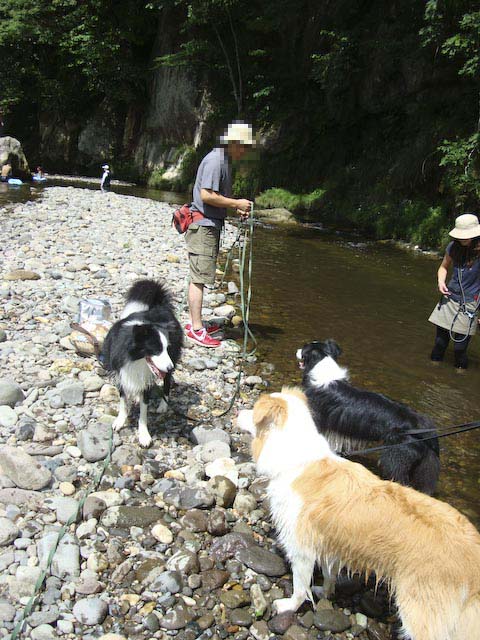 わたしはけっこうブログだけの知り合いが多かったんだけど、 チャナママの(そしてポーターママの?)行動力のお陰でついにこうしてボーダーコリー大(?)集合に参加できました!!感謝感謝です! 今日早速川用のスニーカー(名前わからず(^_^;)リバーナンチャラ)を各々2足購入しました!!泉のアウトレットで!! これで次回はサンダル型に日焼けしたりもうしませんよ~。 from ガスパママ