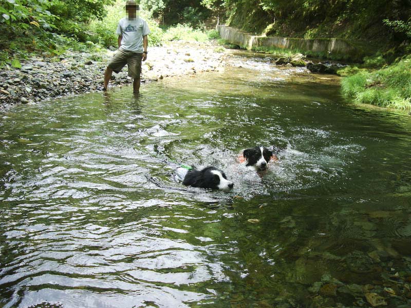 今晩は。 連日30度を超える暑い日が続いておりますが皆様いかがお過ごしでしょうか。 『BORDER COLLIE NEWS』の時間です。 先日、ポーター君、チャナ、ガスパール3首脳によるB3(ボーダー3)サミットが奥新川で開催されました。 ガスパールとポーター君の両国関係においては双方ゆずらぬ激しい議論を交わされ緊張状態に。 会食のテーブルでは距離をとった模様。 昼食会ではポー家の手慣れた炭おこしによりBBQが催された。 写真の鶏手羽(先&元)美味しかった〜 沢遊び二回目にして大分泳げるようになったガス。 でも濡れるのは嫌いなので尻を押されて仕様がなく。 この日はポーター君の6歳のバースデーイベントも兼ねており ケーキが贈られました!おめでとうポーター君! ガスもケーキのご相伴に。 ポーター君とガスパールの緊張関係が考慮され サミット後の記念写真は別々に。 虫除けスプレー、線香などの効果により予測されたアブ・蚊問題が軽微だった今回のサミット。ポーター君とガスパール両国の緊張状態の解消がこれからの課題となるだろう。 〈ロイター中山支局〉