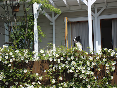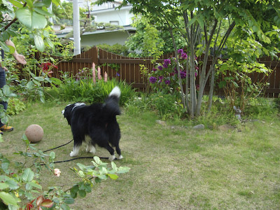 あー、今日も雨ですねー。 土曜日とか、日曜日とかこの頃いつも雨… ガスパパ「きっと、月曜日は晴れるよ♪」 たぶんそうねー(-_-) と言うわけで、先週のお天気の良い日に撮っておいてもらった我が家の「ナニワイバラ」 すごい満開です! 外から見るとこんなかんじ♪♪ 小さな苗だったのに、こーんなに大きく見事に伸びました。 何にもしてないのに、ひとりで育って、なんてかわいい!丈夫なのね。 毎年楽しませてくれる「ルピナス」! 今年も咲きました♪ こちらは、「オダマキ」… わたしは全然詳しくなくて、ガスパパが一生懸命植えてます(^^ゞ ターシャの庭があこがれ… 素敵なお庭は一日にしてならず、20年30年かかってやっと素敵なお庭ができるのよ! と言うターシャの教えどおり、気長にあこがれてますが… ダァーーー!!! ワフ!ワフ! バシュ!!(ヘディングしたとこ) ガサ!ガサ!ガサ! 毎朝の散歩後の日課となっているサッカーのサッカー場でもあるので、 20年30年たったからと言ってどうなるものでもないかもねー(^^ゞ