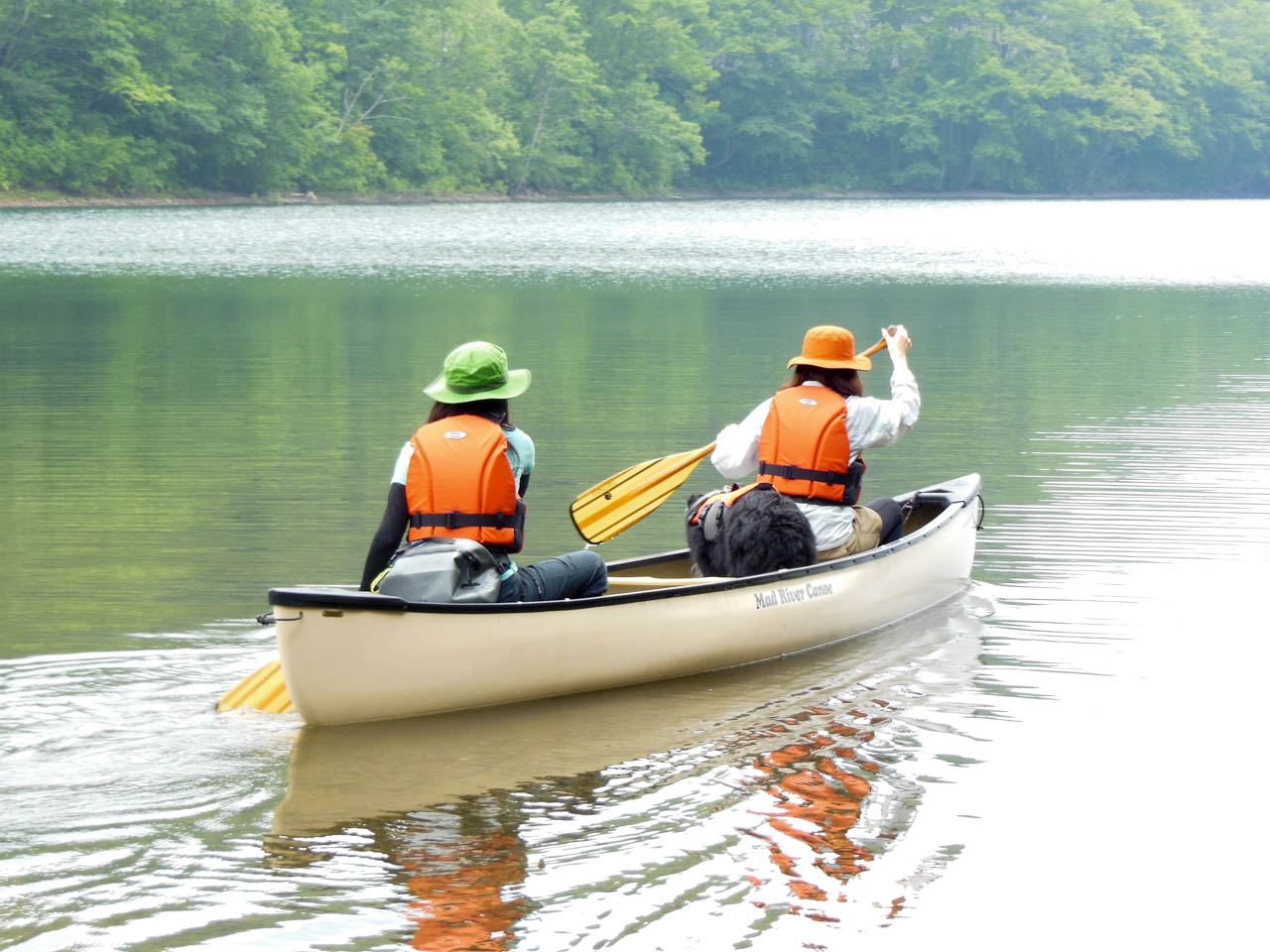 天気が心配だったけど早起きして行ってきました!裏磐梯の小野川湖。 ディスカバリー3&4をならべてニヤニヤが止まらないガスパパ&チャナパパ 似ている二人、でも一カ所違うところが!チャナ号の背中にはカヌーが乗っています。 そう、今回の目的は「カヌーでまったり」なのです。 湖畔にベースキャンプを設営して、いざ漕ぎ出すぞ! まずチャナ家チームが出発! チャナ、颯爽としています!さすが慣れたものです! つづいて男子チームが漕ぎ出すも… ガスがピーピー言って、ついてきて離れない(汗 まだまだついてくるガス、大丈夫か?水は得意じゃないので溺れるかとひやひや。 しかたがないので乗せて行くことに。 おとなしく乗っているガス。 どうやらガスにはカヌー犬の才能があるのか!?? パドリングの講習を受けて女子チームもいざ出発! フローティングベストを着けて「出来る犬」感UPのガス。 ガスパママも良い筋してる?(上陸してほっとしてるだけ) ガスパ家チームもなんとか一回りしてきました。 小野川湖は水がきれいで気持ちいいです。 チャナママの願い「一人と一匹乗り」も叶った? ガスがなんだか余裕の表情で楽しそう♪ カナディアン・カヌー、いいですね〜 ガスの才能を生かすためだ、しょうがない、ウチにも一艇。 ガスパ家はただいま家族会議中~(なのか?) ひとしきり遊んだあと檜原湖畔の「山塩ラーメン」へ。 前回裏磐梯に行ったときには雪の中だった「moto coffee」 おいしいコーヒーの秘密は裏磐梯の水では? テラスはワンコOKでした。 一日遊んで、帰り道は高速で土砂降り! チャナの晴れ女ぶりに助けられた一日でした。 また行きたいな〜、今度は我が家も…(むむむ)