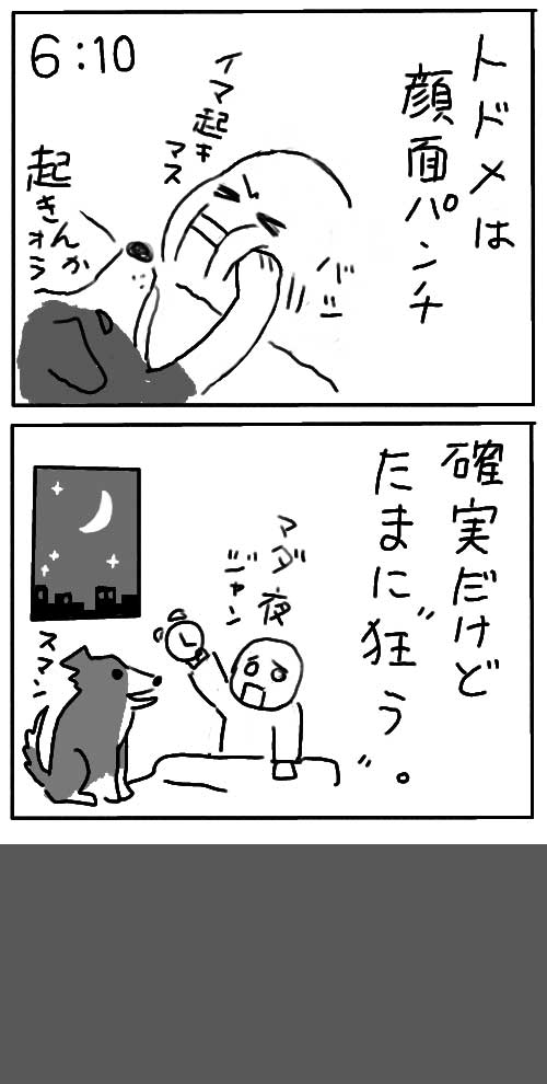 もう少し優しく起こしてくれればいいのだけれど。 週刊はちょっとつらいので、ネタが浮かんだらということで。 from ガスパパ TRACKBACKS