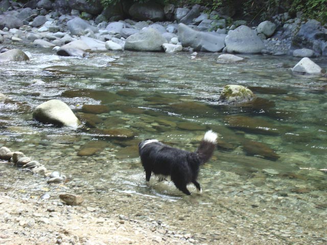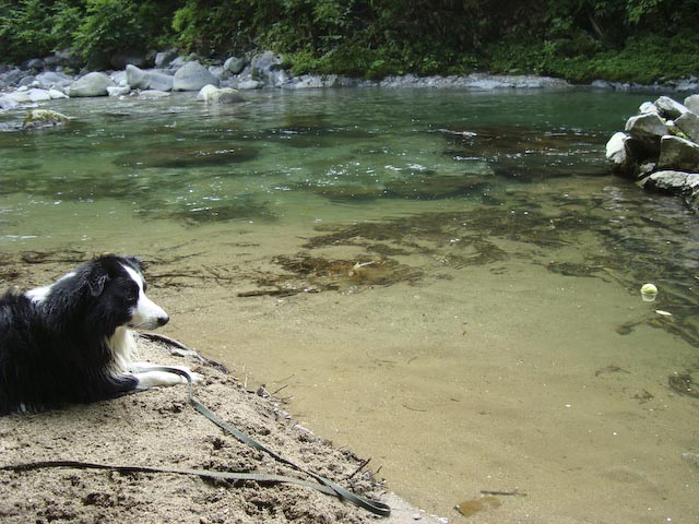 かぁっと照りつける太陽の下で、木陰や水辺で遊ぶのって、本当に夏休みって感じですね~♪水中ボール回収!けっこう簡単に書いてますけど、なかなか大変で一時はあきらめかけたんですよ。で、私が岩を伝って取りに行こうとしたら、ガスが俄然がんばって取ってきたんです!えらいね、ガス!と言った時のガスパールの表情がとても得意げでした(^^ゞ フットルース、いつかいっしょに行けたらいいですね♪ from ガスパママ