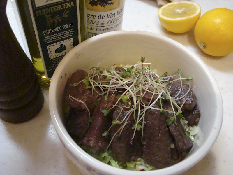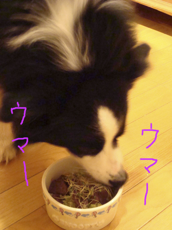 きのう、2月22日。 全国的にはニャンx3でネコの日らしかったけど うち的にはガスの誕生日! ( 例によって“キッチン・ドッグ”のレシピから オーストリッチのステーキを! でも、このテーブルセッティングはどうよ? いったい誰の誕生日なのか… まあ、テーブルで食べさせる訳じゃないからイイか。 ごはんの前はたっぷり「マテ」をさせて、ありがたみ度をUP。 そうか、うまいか。 ちゃんと咬んで食べなよ。 おいしいものを食べてゴキゲンのガス。 さてと、飼い主もゴキゲンになるかな〜 ( PR