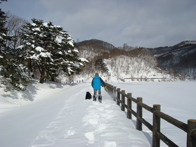 次の日はスノーシューを借りて雪上トレッキング 雪がさらに積もって股下ぐらいあるが これさえ履いてれば大丈夫! 埋まりそうな雪の中 飛び跳ねないと進めないガスは大変そうだけど 運動になって良いだろう。 ここはフットルースの裏の沼 凍った水面が冬場だけのドッグランになります。 でも今年は暖冬のせいか 沼の中心のほうは危険な感じがしたので 秋元湖に行ってみました 快晴だけど時折突風が。 ガスはぜんぜん平気。 秋元湖。 このあとは近所をドライブ (あまりに風雪が厳しくて結局車から出て遊べなかったが) この日の収穫は近くのイタリアンレストランイル・レガーロ ランチセットとピザを頂きましたが これがまたおいしかった〜、 イタメシにはうるさいガスパパも大満足。 もっと早く行ってればよかった。 明日へつづく PR