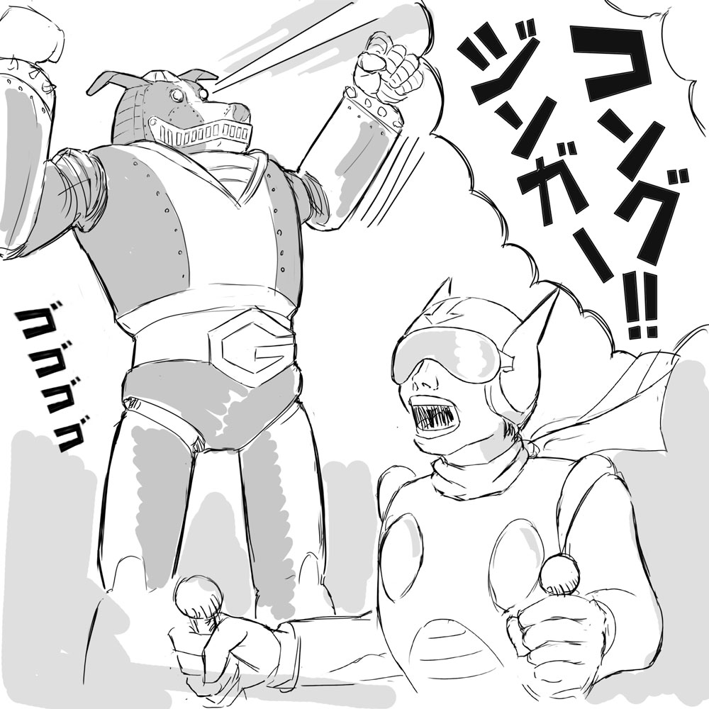 「コングジンガー」、みなさんは何だと思いましたか? 答えはこれ↓ ガスも小さい時にお世話になった「コング」の新商品。 ゴム素材のリングをカタパルト式に投げる玩具です。 名前に惚れて購入、さっそく宮床ダムへ行って試してみました。 この時点ではやる気満々のガスパール。 新しい玩具に興味しんしんです。 大きく振りかぶって〜、 投げました! ピューッ、走る走る! 小動物のように良く走ります。 ガスもさぞ楽しかろうと思ったのですが、最近の運動不足がたたって疲れたのか 遠くにやってきたミニチュアプードルの方ばかりが気になって 数回ダッシュしただけで、せっかくの「コングジンガー」はどうでも良くなったみたい… ガスのヤツ〜〜〜 ところで、 「コングジンガー」ってネーミング。 ガスパパは初めて聞いたとき、 こんなの↓ だと思ったんですが… 古いですかね…