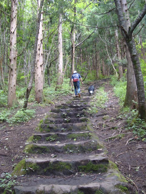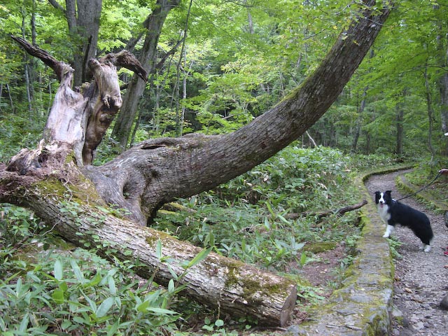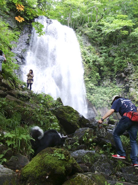 ぐっすり眠って目覚めスッキリのガス。(ガスパパ、オマエモナー) フットルースを出発! 今日も快晴です、すでに暑い! 探検犬ガスパール、幻の滝を探検です。(本当は往復40分の初級トレッキングコース。) 裏磐梯の原生林を歩くガスパール、緑が濃いです。 案内板にあったクスノキの大木ってこれかな? 木のウロにハチの巣、注意です。 初級コースと侮っていましたが、結構登ります。 ついに、幻の滝が見えてきました! がんばって滝のそばまで行ってみます。 近くで見ると結構迫力があります。 滝をバックに探検犬ガスパールの勇姿。 探検で疲れた身体をリラックスさせるため曽原湖奥のハーブスペース バンディアへ。 ハーブ園の中にティーラウンジとショップがあります。 アイスハーブティーを飲んでくつろぐ飼い主。 園内に小さなパン屋さんがあり、焼きたて手作りパンを販売しています。 パン好きの友達のお土産に決定。 昼食は裏磐梯に来たら必ず行くイタリアンレストランイル・レガーロで。 テラス席はワンコ同伴OKです。 良質の地元素材を本格イタリアンに。 パスタランチ、ガスパママが頼んだ地元産ズッキーニとハム、オイルベース。 ガスパパはミートボールとわらびの入ったトマトソース、絶品です。 前菜のハムも旨かった〜 店使用のオリーブオイル、香り高くてとても美味しかったので 我が家用に一本買ってきました。 ガスパール家のイタリアンのレベルが上がるかも!? 食後は定番五色沼。 観光客でいっぱいの中、ボーダーちゃんを発見! 走りよって挨拶しました。 ボーダー連れの人を見たら素通りできませんよね! サカナ好きでも食べられないよ、ガス。 五色沼を少し散策したあと帰路につきました。 長い記事になってしまいました、読んでくれた人ありがとう。 P.S. 帰りもアンナガーデンに寄り、 ジェラートを食べて福島路ビールをみやげ(もちろん自宅用も) にしたのでした。