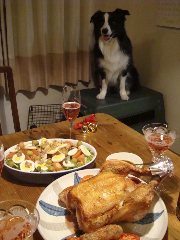 ガスパパのカマキリ卵予報では今年はほとんど雪が降らないハズだったが 神様の粋な計らいでホワイトクリスマスに! でも神様、ちょっとやり過ぎでは… シンシンと雪が降る夜、ガス家では恒例のクリスマス会が開催されました! 丸鶏のローストとサラダニソワーズ。 堪らない匂いにクラクラしているガス。 かわいそうなので後でちょっとだけあげた。 PR