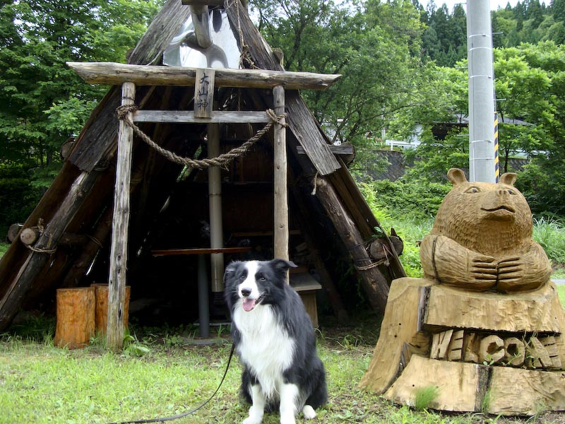 森吉町から角館へ向かうには「マタギ街道」という道を通って行きます。 マタギ小屋の前で。 ガスは小心者なので熊狩りなんてとてもとても。 看板に誘われて「クマ牧場」まで行ってみましたが、ペット不可でした。残念。 雨に濡れた角館も風情がありますね。 お茶屋で一休み。 ここのお姉さん達にはモテモテでした、ガスに「モテ期」到来か? 雨もなんとか持ちこたえてくれて良かったです。 このあと、地酒の店を発見、試飲&GET! 運転手のガスパパはオアズケです。