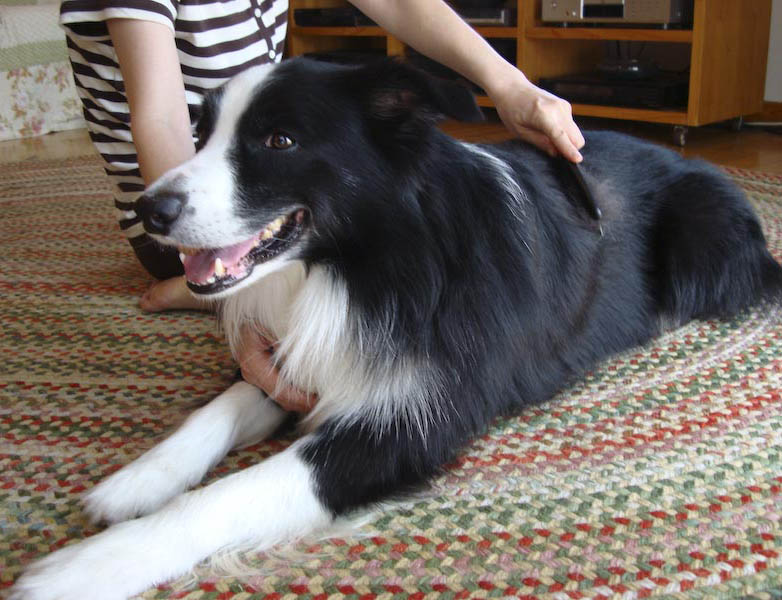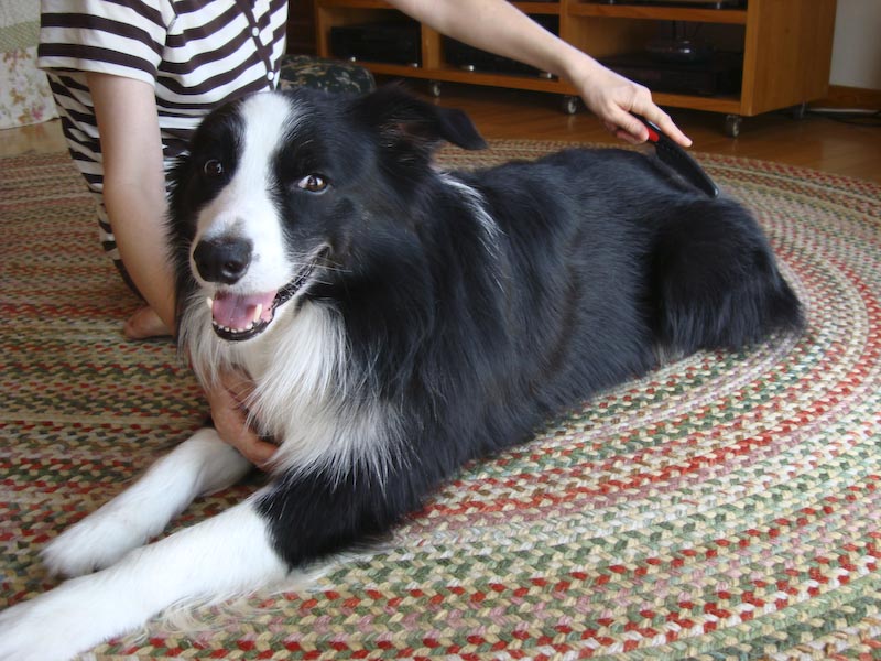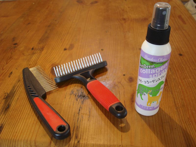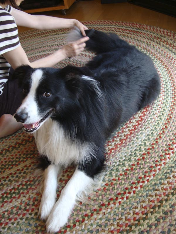 暑い日が続いてますが、ガスパールの毛もボコボコ抜けて いつもフローリングに毛が舞っています^_^; そこで徹底的にブラッシングをすることにしましたよ!! 新兵器がこれです、スリッカーとコーム!! ミニチュアダックスを飼っている妹が買ったものなんですが、 そのダックスちゃんが毛を短くカットしてしまって、 もう使わないから、とガスパールにくれたんです。 これがなかなかの優れ物で、最近のお気に入りです。 『イタリアファープラスト社製のスリッカーとコーム 全ての歯が回転するように作られていて、引っかかっても無理に引っ張ることなくスームーズなコーミングが可能です。スムーズに抜け毛、死に毛を書き出します。歯が滑らかに回転するため被毛をこすって傷めません。中、長毛種にお使いいただけます。 コームの歯先は丸く滑らか加工されており、肌をいためません。サビに強いクロームメッキ仕上げ♪』 これで力をかけずにスムーズにアンダーコートがたっくさん取れるんです! ちょっと前に買ったとても高かった「ファーミネーター」よりずっといいです! 妹さん、ありがとう!! ガスパールもこんなふうにリラックスして、コーミングされています。 尻尾の先まで、きれいにしますよーん❤ あ、そろそろ我慢の限界ですか? 終わったら、大好きなグリニーズをあげるからもうちょっとね~❤ ガスパパが「お、ガス痩せたんじゃないか?ダイエットが効いたか!」とか言って 体重測ってましたが、20.2kgで全然変わってませんでしたよ~^_^;
