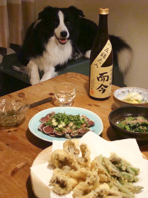 せっかくバラも咲き出したというのに連日の雨降り。 『雨の薔薇とガスパール』コーナーにちょっとひと苦労です^^; 「今日の散歩は、ちょちょっとだな!」ってまたガスパパが言ってますよ。 週1ペースでブラッシングをしてるんだけど、この時期のガス毛はすごい!! この写真を撮った後もまた2回!このくらい取りました。 うさぎ3匹分くらい取ったので、見た目スリムにもなりましたよ♪ これで少しは涼しく過ごせるようになるかな。 このあと、抜いた毛をまるめて「アフロ犬」の写真を撮ろうと試みるも どうしても彼のプライドが許さずダメでした。ちぇっ。 「んなもん!!てやっ!」 お手入れ嫌いのガスパールは、やっと終わって、スッキリ顔。 ■■■ そして夜はお待ちかねの「酒とガスパール」! 今回は“あさたろ”さんから頂いた「而今(じこん)」純米吟醸! スッキリとしていながら、香り高く芳醇。 肴はカツオのタタキ土佐造りと月山はなたけとアスパラの天ぷら。 ありがとう“あさたろ(の妹)”さん、うまかったよ〜