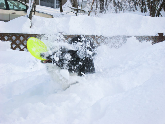 ちょっと前のことだけど… 先月の14日〜16日に裏磐梯にあるお気に入りのドッグホテル 「フットルース」さんに行ってきました! 「一面雪に覆われる、真冬もいいよ。」という話を聞いて、 いつか行きたいな〜と思っていたので。 今年は暖冬で仙台でも(このときまでは)雪なんか全然降ってなくって 福島も雪は無いんじゃないか…と思ってたけど 行ってみたらやっぱり雪の中でした。 そういえば、周りはみんなスキー場だもんね。 夏に遊んだドッグランも雪の中 到着早々、雪中フリスビーに大興奮のガスパール。 ドライブで溜ったストレス爆発か? 雪につっこんで、目やハナに雪がはいっても 楽しいガスパール。 一通り遊んだあと、冷えた身体を露天風呂で温め、 評判の料理に舌鼓を打つガスパパなのでした。 (今回の旅の“真”の目的はこれ。) 明日につづく。