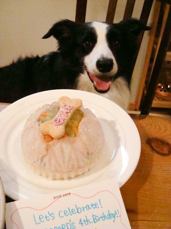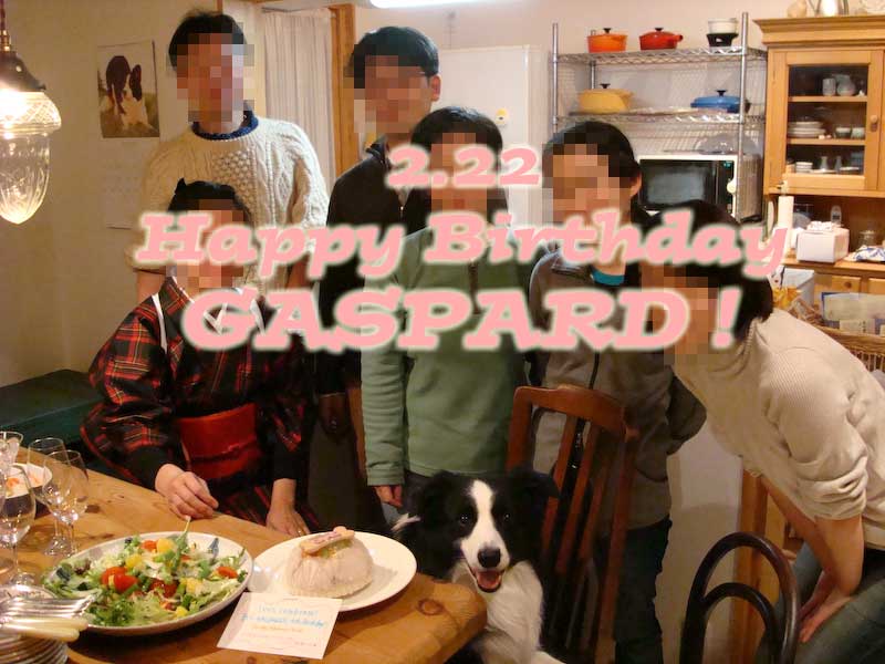 2月22日はガスパールの誕生日、みんながお祝いに集まってくれました。 4歳になりました。 プレゼントその1は、名前入り首輪(某ペット保険の景品) プレゼントその2、mvbabaさんに注文して描いていただいたトールペイント! ボーダー飼いだけあって、さすがにツボを心得てらっしゃる 可愛く描いてもらってどうもありがとう! こんな風に飾っています。 そしてケーキはキッチン・ドッグに注文。 ターキー&ライスのゼリー寄せだぞう〜 おいしいぞ〜 ホネ・プレートにもちゃんとネーム入り。 記念写真の後は宴のはじまり、 こっちが本番なのは言うまでもあるまい。 PR