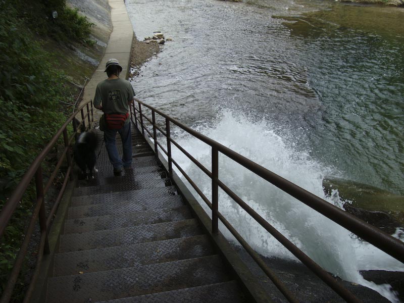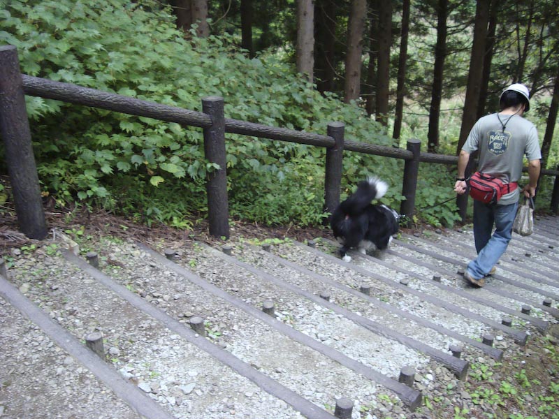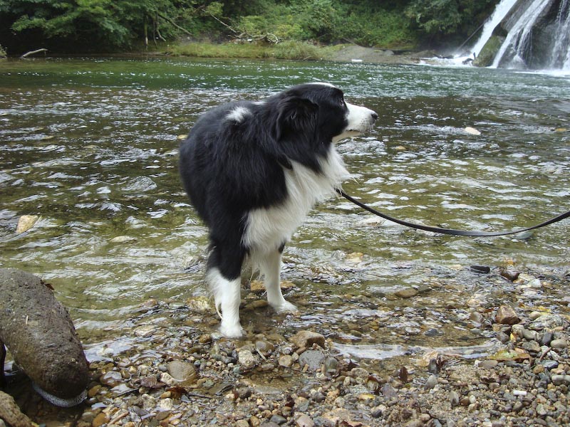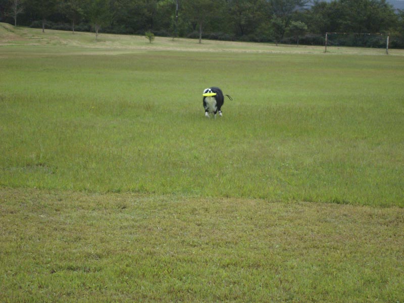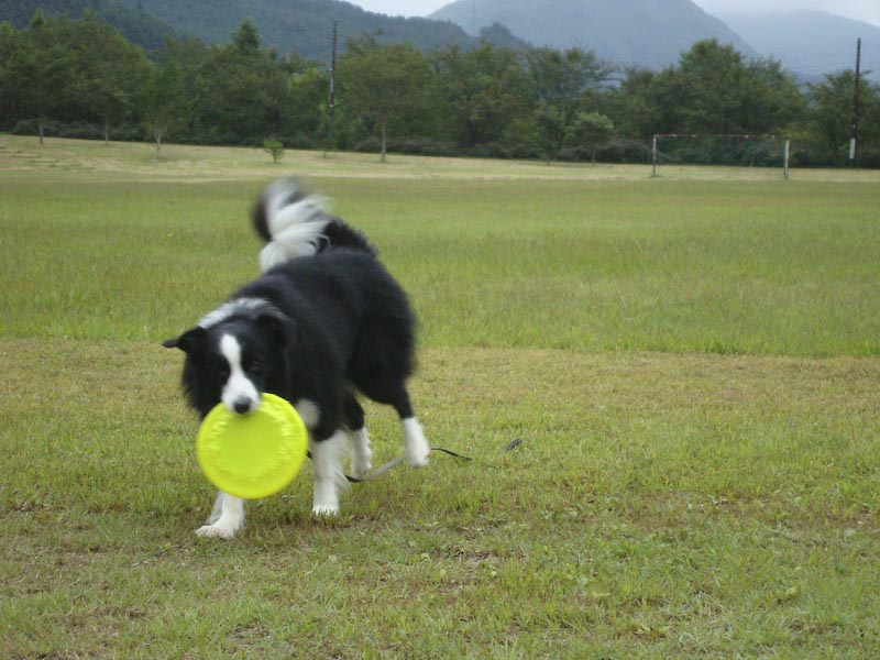 えへ、ご無沙汰です。 月日の経つのは早いですね~、もう9月も下旬ですよ。 秋本番!またまたおいしい季節ですね♪ だいぶ経っちゃったけど、この間のお休みの日に、七ヶ宿に行ってきました。 HeartyDogsさんのブログですごくよさそーっと思って、 前からガスパールと行きたいなぁ、と思ってたのです! 地理勘ゼロのガスパママは、休日の午後に急に言い出したわけですが、 七ヶ宿って、けっこう遠かったです^_^; でも、無事おんなじ場所に到着! 長ーい、階段を下って… そして、登ります、滝の水しぶきがすごーい!! 写真であんまりわからないのが残念だけど、ほんとーは迫力あるんです。 あ、あれ^_^; 滝がほとんど写ってない… これも…^_^; でも、ガスパールの引けたおしりで、その迫力を想像してください(^^ゞ すごかったよねー、ガスパール?! うん、すごかった… なんだか、よくわからない写真ばっかりで恐縮です。 なにに、問題があるのかなぁ?カメラかしら?カメラマンかしら? うーん、両方かなやっぱり。今後の課題ですね。 ■■■ そのあとは、芝生の公園を見つけて、ちょこっとフリスビーをして遊びました。 ガスパール、大喜び!!後ろ脚が地についてないよ! 全力で走ってくるこの姿がたまらないのよねー!(^^)! でも、フリスビーをオフしません(*_*; ひっぱりっこじゃないよー ナイスキャーッチ!! エヘエヘ… こんな風に楽しく遊んでたのはいいんだけど、 このあと大変な事件が!!! すごいりっぱなキャンピングカーが公園に止まってたんだけど、 その車にはハスキー犬のシールがでっかく貼ってあったんで、 かなりガスパール一家の目を引きました。 「へー、ショウドッグって書いてある~」 そのハスキー犬たちが、2頭、公園に散歩にきました。 大きくて、ふさふさした、さすがショウドッグってかんじの立派な犬たちです。 ガスパールはその犬たちと遊びたくてたまらなくて、じたばたしてましたが、 ハスキー達は、すーっと優雅に遠くへ行ってしまいました。 で、わたしたちは、また、しばらくフリスビーをして遊んでたんだけど、 突然、ガスパールが脱走!! ハスキー達が、行った方向にすっとんでいっちゃった!! ガスパパもガスパママも必死で、「ガスー!!」と呼んでるのに、呼び戻し効かず(/_;) ガスパパがここ最近ないくらいの勢いで全力疾走して、ようやく捕獲!(+_+) ガスパールめー(-"-) このまま行方不明にでもなったらどうしよう!と冷や汗をかいたのでした。 もちろん、ガスパママはガスの教育について、考え直さなくては!と思いました。 うちに帰ってから、ワンコのしつけ本を再度、本棚から出して読みなおしです! 「おい、反省してるか?」 「えへ!」