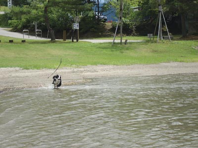 裏磐梯の旅、夜はずっと豪雨でした(*_*; 雷がなってすごーいどしゃぶり… そんななかで、ガスパパは露天風呂に入ってたわけですが… もうおへそがないかもしれませんね、見てないけど… でもねー、やっぱり降ってたのは車の中だけで、 目的地に着くと晴れてるんですよ!(^^)!ほらね。 ガスパママの念力が通じたのか? 「ううう~、雨雲よ去れ~」 ^^; なに、それ?やだなぁ~ ガスパパの好みで「柳津虚空蔵尊」というところに 立ち寄りましたが、立て看板に “ペット立ち入り禁止”の文字が!!がーん うちのガスはペットじゃなくて家族なんですけど~と言いたいところですが、 一般常識人として、ガスパールとガスパママは階段下で、待つことにしました。 (写ってるのは、ガスパパですよ、念のため…) とそこに、観光にきたおじちゃんたちに、 「あれ、ワンちゃんは見に行かないの?」と声をかけられ、 「行けないんですよ~」と答えるガスパママ。 「なんだ、せっかく来たのにね~」とおじちゃん。 ありがとう、おじちゃん、でも、しようがないの、 聖地ですからね、しっこしたりするしね^^; えと、ボクはどっちでもいいですけど… そのあとは、「沼沢湖」というところに行ってみました。 すごーい、奥まったとこで、ほんとにこの道でいいのか不安になりましたが、 着いてみるとこれがなかなかの穴場なんです♪ 浅瀬が続く湖で、水が苦手なガスパールもけっこうザバザバ入って遊んでました♪ あんまり、大したことないようだけど、ガスパールにしたら けっこう“やったぜ!!”って感じなんです(^^ゞ ヌマザワコ…ここも気に入りました、ボク。 このあとは、例によって、会津若松の地酒屋さんに寄って、 珍しげな地元のお酒を2本ほど購入し(涼宵仕立てとかいうの)、 お土産のお菓子を買って早めの帰途についたのでしたぁ。