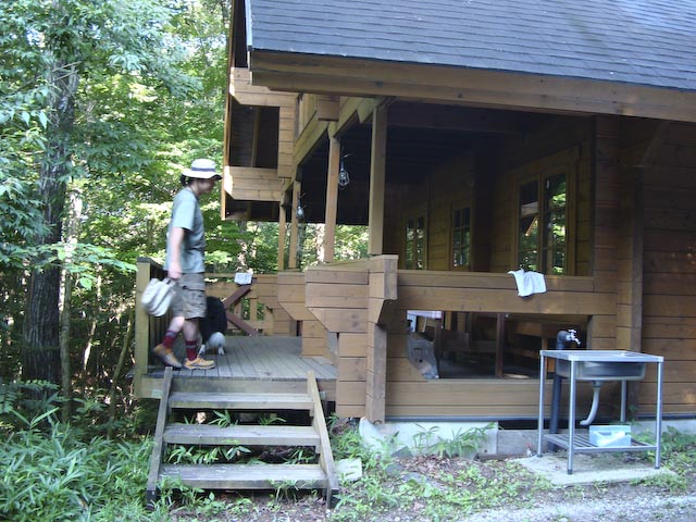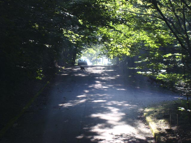 さてさて、翌日も朝からとても良いお天気♪ さっそく、高原の朝のお散歩に出かけます♪ ガスと 朝の光が木々から漏れて、とてもきれいです! と、その時 「ん?!なにやら物音が?!」 あ!!!あれは!! わかりますかぁ?おさるですよ!!おさる! しかも、いっーぱい!! 道路にも、木の上にも、キーキー、ガサガサ… どうやら、群れでいるみたいです。 那須の別荘地もおさるの群れに占拠されつつあるみたいですね^^; ま、もとはおさるの住処だったんでしょうから仕方ないですね。 「すいません、おじゃましてます…」 ガスは初めて見るおさるに興味深々です。 そんなこんなで、楽しい朝のお散歩を終えて、ログハウスへ帰ってきましたぁ。 ログハウスの全体像は、こんなかんじです。 ここは、お風呂が温泉なんですよ♪ でも、ガスパママが間違えて、水道水の温水をお風呂に入れちゃった! なんとなーく、間違えたかなぁ…と思っている時、湯上りのガスパパが 「やぁ、温泉はいいねー、なんか肌がさらさらになったよ♪」と言ってました。 思い込みが激しいって幸せかも…^m^