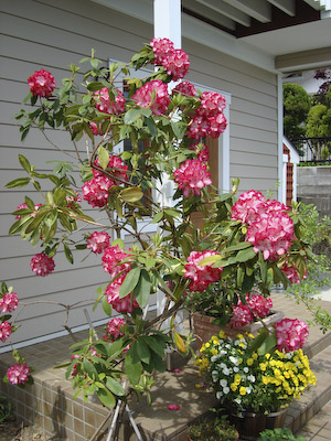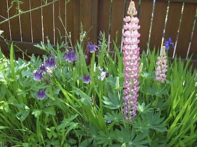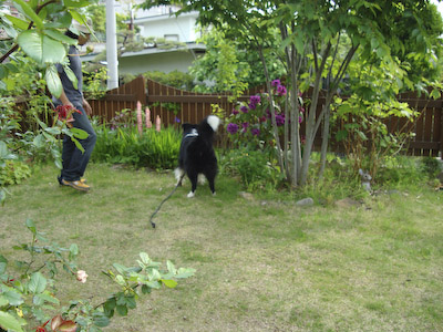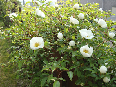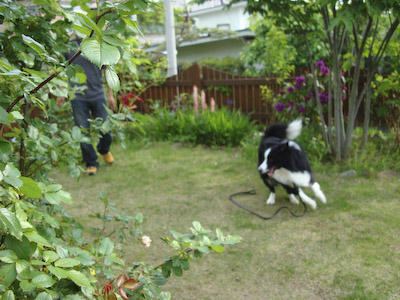 あー、今日も雨ですねー。 土曜日とか、日曜日とかこの頃いつも雨… ガスパパ「きっと、月曜日は晴れるよ♪」 たぶんそうねー(-_-) と言うわけで、先週のお天気の良い日に撮っておいてもらった我が家の「ナニワイバラ」 すごい満開です! 外から見るとこんなかんじ♪♪ 小さな苗だったのに、こーんなに大きく見事に伸びました。 何にもしてないのに、ひとりで育って、なんてかわいい!丈夫なのね。 毎年楽しませてくれる「ルピナス」! 今年も咲きました♪ こちらは、「オダマキ」… わたしは全然詳しくなくて、ガスパパが一生懸命植えてます(^^ゞ ターシャの庭があこがれ… 素敵なお庭は一日にしてならず、20年30年かかってやっと素敵なお庭ができるのよ! と言うターシャの教えどおり、気長にあこがれてますが… ダァーーー!!! ワフ!ワフ! バシュ!!(ヘディングしたとこ) ガサ!ガサ!ガサ! 毎朝の散歩後の日課となっているサッカーのサッカー場でもあるので、 20年30年たったからと言ってどうなるものでもないかもねー(^^ゞ
