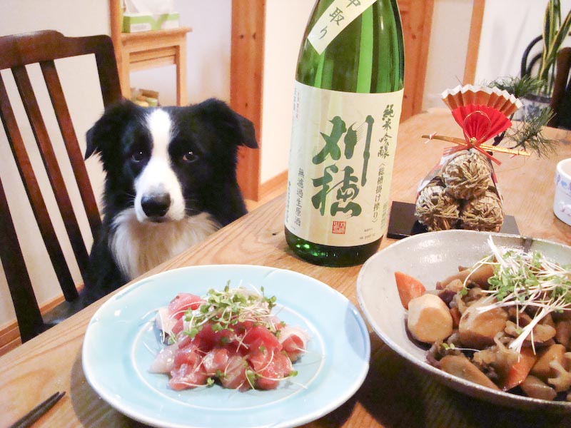 ガスを連れて大崎八幡神社に初詣。 周りの人たちに「カワイイ〜♡」といわれて 飼い主鼻高々です。 でも、連日の雪が融けて参道はドログチョ...... お願いだから、その手で晴れ着のお姉さんに飛び付かないでね。 そして、2008年初の「酒とガスパール」コーナー 「刈穂」の純米吟醸、無濾過生原酒の「中取り」でございます。 手前にあるのがマグロの中落ちで作った「ポキ」。 醤油をかけないガス用「ポキ」ももちろん有ります。