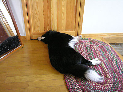 1月だというのに仙台は雨。 去年はあんなに雪が降ったのに 今年はまだ雪かき出動回数ゼロ。 「スタッドレスタイヤ買わなくても良かったかも」とぼやくガスパパ。 でもまだまだ雪のシーズンはこれからだぞ 名犬をめざすためには学科も必要ということで 今日は名犬中の名犬である元祖「名犬ラッシー」を観てお勉強 たまたまホームセンターで安売りDVDをみつけただけのことだけど… なんとなく「ラッシー」ってオスのイメージだったけど 女の子だったのね。 よく観て、おまえも名犬になるんだぞ ・ ・ ・ って、寝てんじゃーん。 それも、すごい角度で おまえ、首は大丈夫か?
