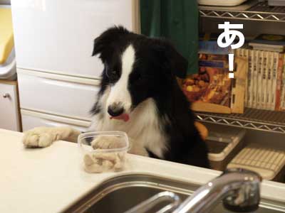 ガスパママ、今日はがんばってワンコめしを作ってあげた。 ゆで野菜、ゆでトリ肉、とそのゆで汁 こうやって小分けに冷凍しておくと使い良いです。 早速においをかぎつけたヤツが… 勝手に“わくわく”しておる。 ↑犯行の瞬間!って、これはヤラセ写真ですた。 ガスは悪くないです。