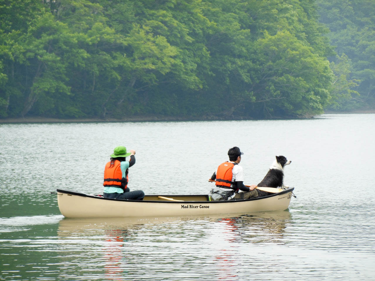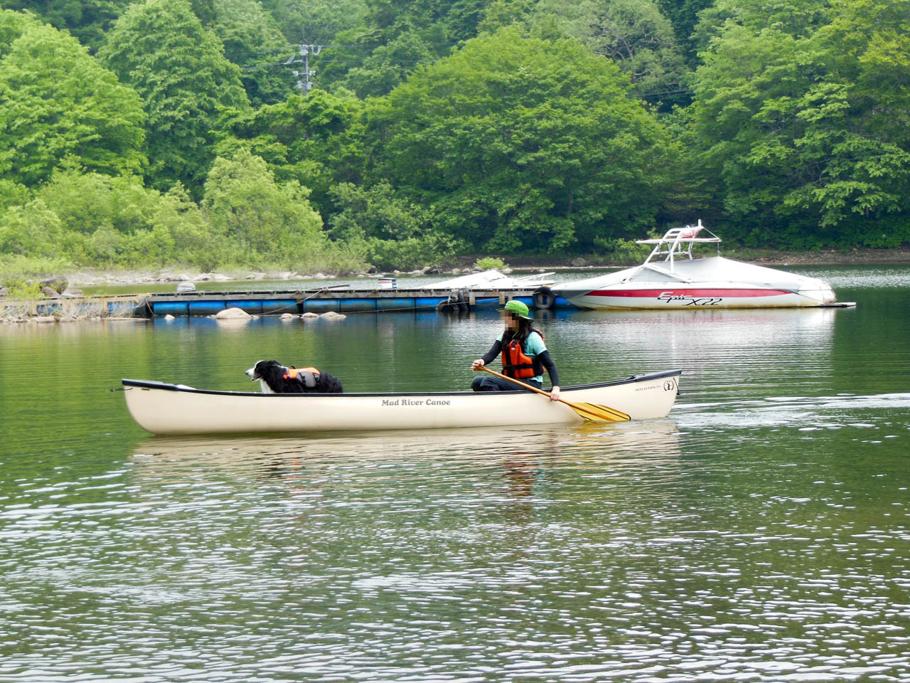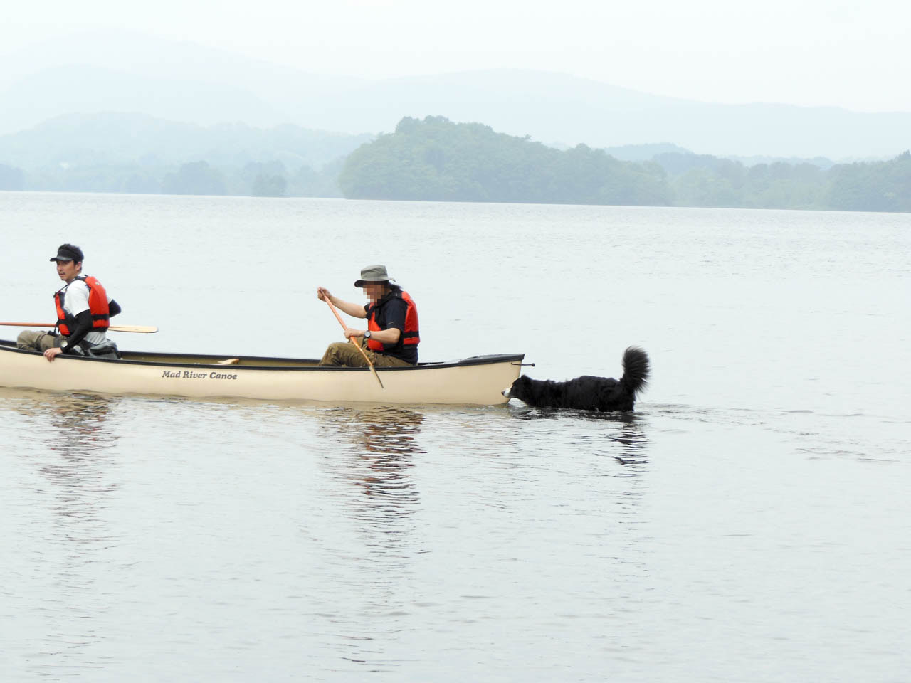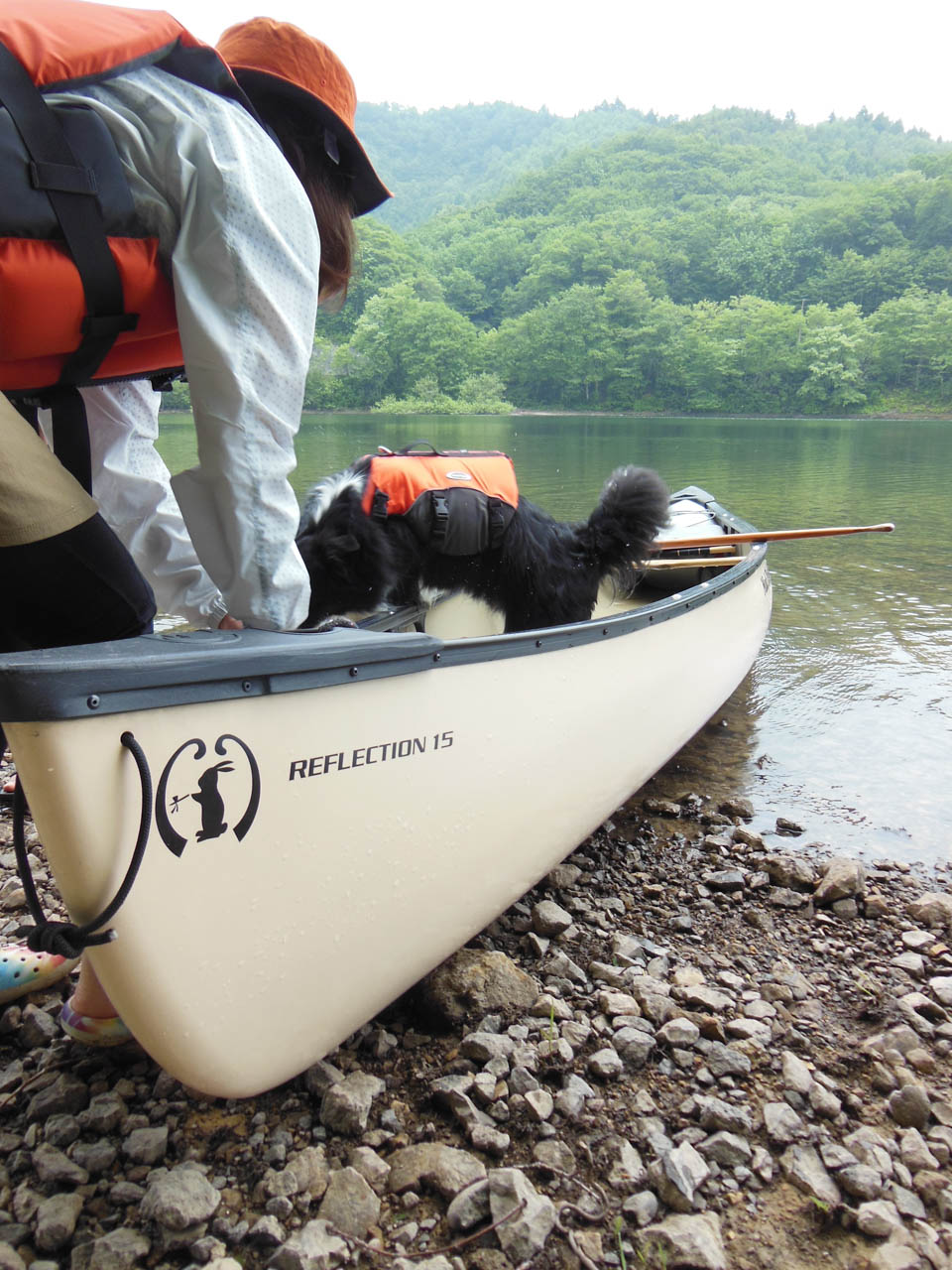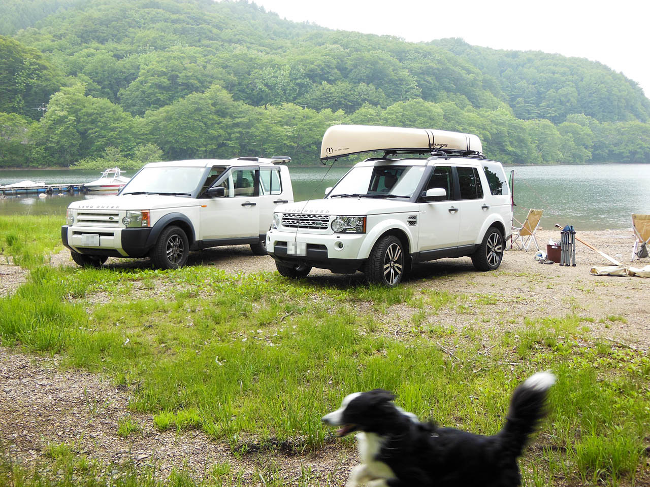 天気が心配だったけど早起きして行ってきました!裏磐梯の小野川湖。 ディスカバリー3&4をならべてニヤニヤが止まらないガスパパ&チャナパパ 似ている二人、でも一カ所違うところが!チャナ号の背中にはカヌーが乗っています。 そう、今回の目的は「カヌーでまったり」なのです。 湖畔にベースキャンプを設営して、いざ漕ぎ出すぞ! まずチャナ家チームが出発! チャナ、颯爽としています!さすが慣れたものです! つづいて男子チームが漕ぎ出すも… ガスがピーピー言って、ついてきて離れない(汗 まだまだついてくるガス、大丈夫か?水は得意じゃないので溺れるかとひやひや。 しかたがないので乗せて行くことに。 おとなしく乗っているガス。 どうやらガスにはカヌー犬の才能があるのか!?? パドリングの講習を受けて女子チームもいざ出発! フローティングベストを着けて「出来る犬」感UPのガス。 ガスパママも良い筋してる?(上陸してほっとしてるだけ) ガスパ家チームもなんとか一回りしてきました。 小野川湖は水がきれいで気持ちいいです。 チャナママの願い「一人と一匹乗り」も叶った? ガスがなんだか余裕の表情で楽しそう♪ カナディアン・カヌー、いいですね〜 ガスの才能を生かすためだ、しょうがない、ウチにも一艇。 ガスパ家はただいま家族会議中~(なのか?) ひとしきり遊んだあと檜原湖畔の「山塩ラーメン」へ。 前回裏磐梯に行ったときには雪の中だった「moto coffee」 おいしいコーヒーの秘密は裏磐梯の水では? テラスはワンコOKでした。 一日遊んで、帰り道は高速で土砂降り! チャナの晴れ女ぶりに助けられた一日でした。 また行きたいな〜、今度は我が家も…(むむむ)